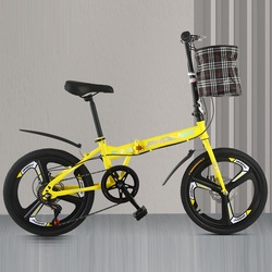 Bicicleta de acero al carbono Plegable ligera de 16-20 pulgadas, bicicleta plegable de ciudad para adultos de una sola velocidad con freno de disco para hombres y mujeres
